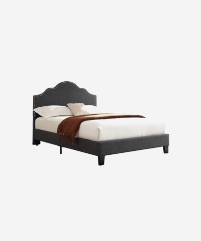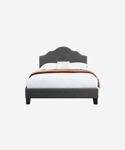 The All in One Fully Upholstered Shelter Queen Bed upholstered bed is designed to add a contemporary flair to many of today’s modern homes. The button tufted headboard is inset w/ two wings, giving it a contemporary shelter feel. Also features a matching low profile footboard and hinged / folding side rails.